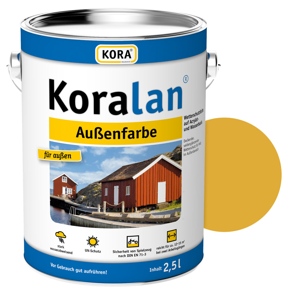 Koralan Außenfarbe ist einfach zu verarbeiten und in vielen Farbtönen erhältlich. KORA Außenfarbe ist für Spielzeug geeignet.